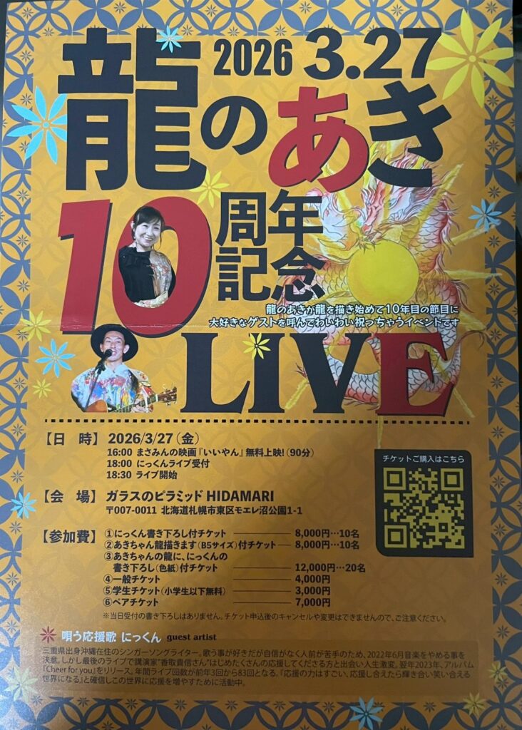 大好きな仲間の”龍のあき”ちゃんの 10周年記念イベントとして、LIVEをさせてもらいます^^