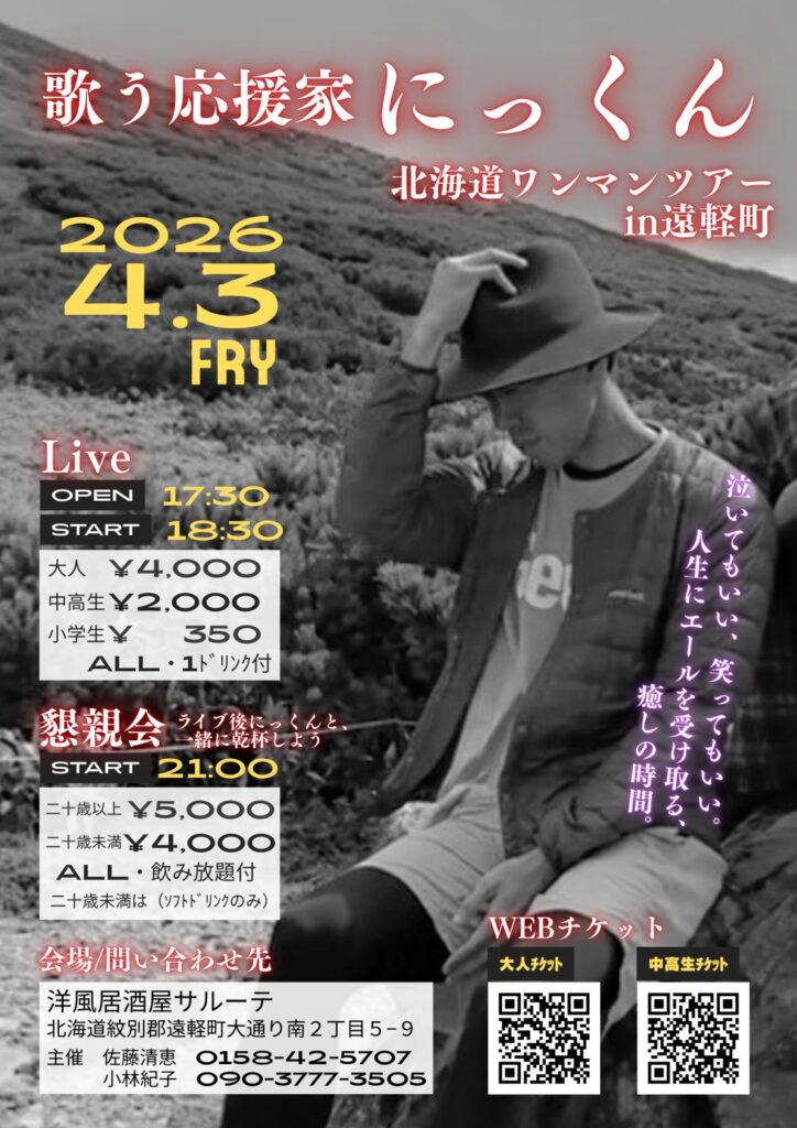 ・2023.5.29(月)(北海道・士別市)Glowly’s presents『cheer for you 〜歌う応援家にっくんCD発売応援ツアー〜』 with シンガーソングライターYOU×もろめい
